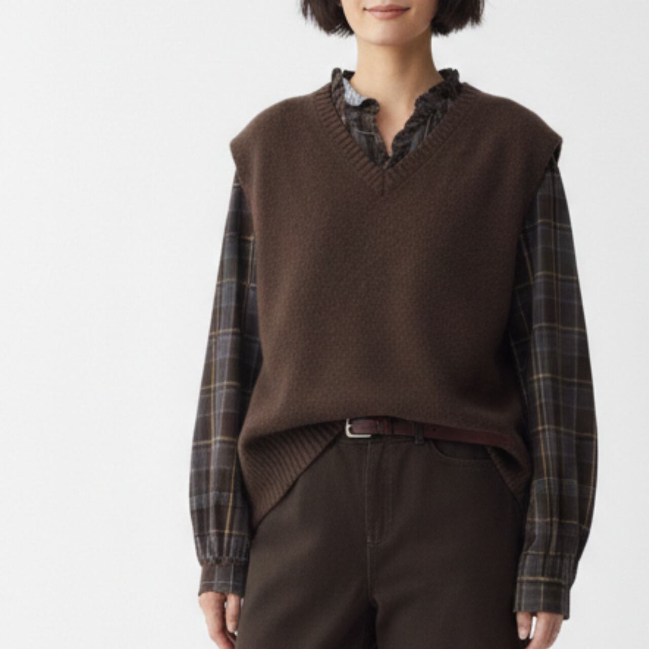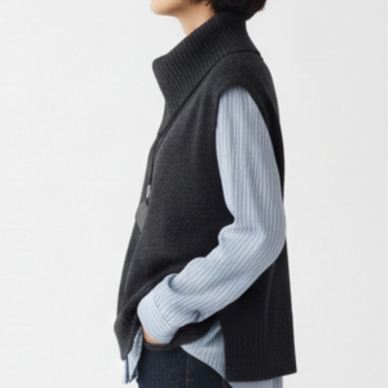 いろんなコーディネートが楽しめるツーウェイVネックニットベスト。 取り外し可能なネックウォーマー付きデザインは、シンプルなニットベストに遊び心を加え 着回しを楽しめます。 ■ サイズ(cm) 【S】 肩幅:47 身幅:104 着丈:61.5 【M】 肩幅:48 身幅:108 着丈:63 【L】 肩幅:49 身幅:112 着丈:64.5 ・手作業による平置きでの採寸の為、多少の誤差が出る場合がございます。 ■ カラー DK GRAY BROWN ■ 素材 ウール ◼️ お届けについて Myuselaでは、ご注文をいただいてから一点ずつ海外より大切にお取り寄せしております。 お届け期間: 通常「10日〜3週間前後」 ※商品状況により、3週間以上お時間をいただく場合もございます。 お手元に届くまで少々お時間をいただきますが、一つひとつ検品・準備をしてお届けいたします。 ◼️ ご購入時の注意事項 海外セレクトアイテムを安心してお楽しみいただくため、以下の点をご了承ください。 在庫について: タイミングにより在庫切れとなった場合は、やむを得ずキャンセル(返金)とさせていただくことがございます。 品質基準: こちらは輸入品のため、日本製とは検品基準が異なります。着用に支障のない範囲での「わずかな汚れやキズ、縫製の甘さ」は、海外製品の特性として販売しております。 色味の差異: 商品のカラーは、お使いのスマートフォンの画面環境により、実物と見え方が異なる場合がございます。 返品・交換: イメージ違いやサイズ間違い等、お客様都合によるキャンセル・返品は承っておりません。サイズ・カラーなどご確認の上、ご注文くださいませ。 ———————————— ご購入前にこちらをお読みください →https://shop.myusela.com/about ————————————