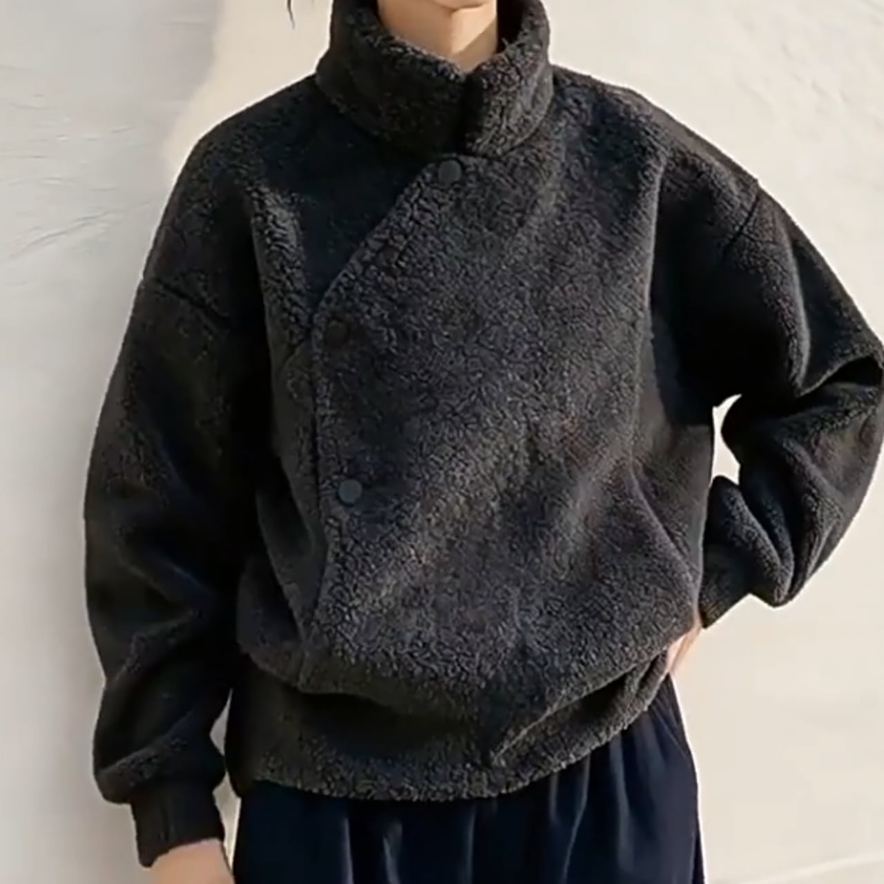 パンツやスカートにと、どちらにも合わせやすいデザインです。