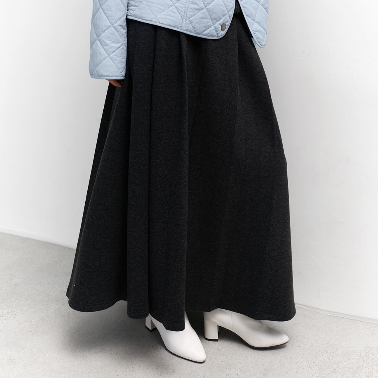 ウエストベルトとループがあしらわれたボリューム感のあるマキシ丈フレアスカート。
