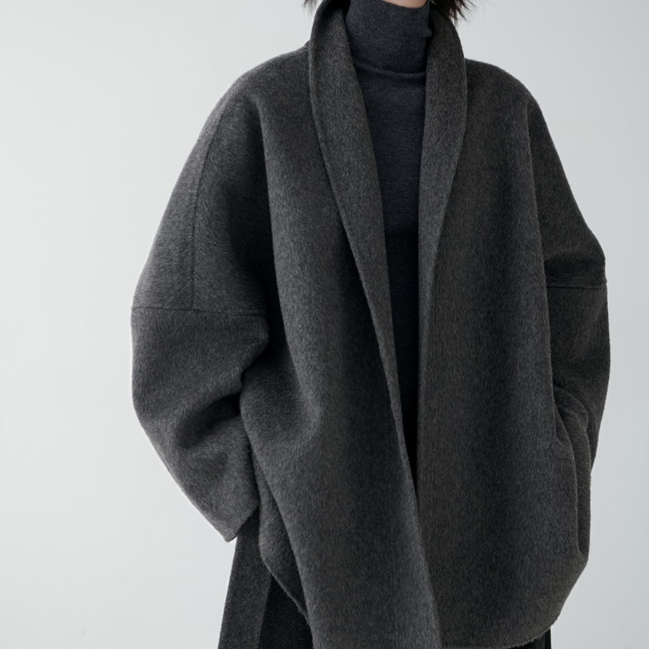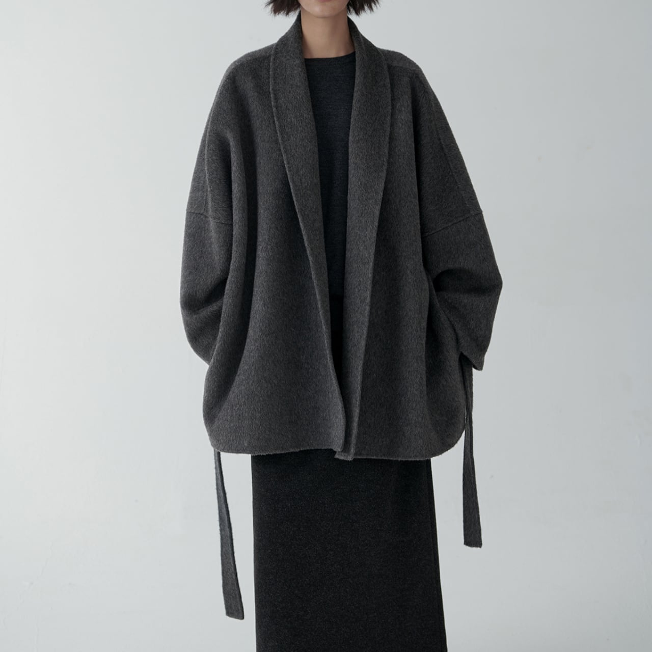 ベルト付き ヒップ丈 ドロップショルダー ジャケット