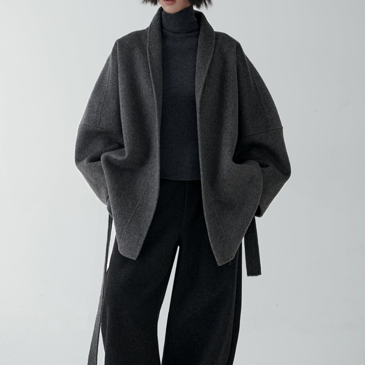 ベルト付き ヒップ丈 ドロップショルダー ジャケット M00011