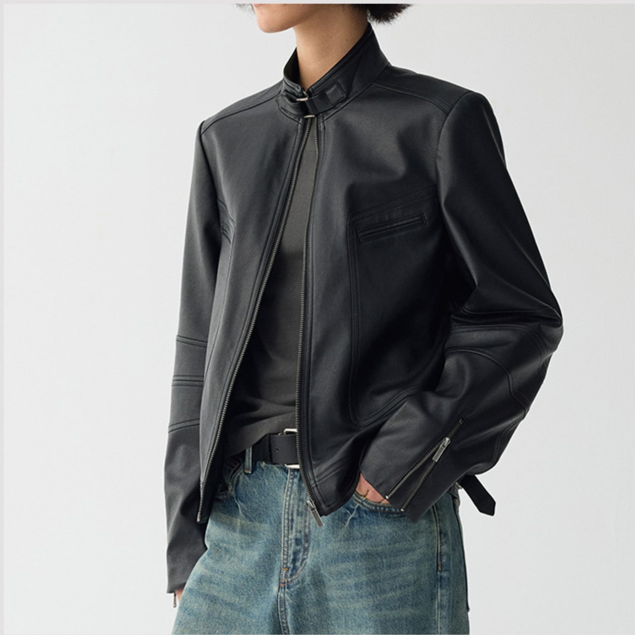 シンプルなデザインで着回し力抜群のジップアップ長袖ジャケット。ジップを閉めてきちんと感を演出したり、前を開けてラフに着こなしたりと、様々な表情を楽しめます。