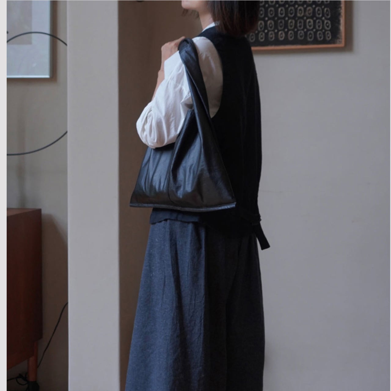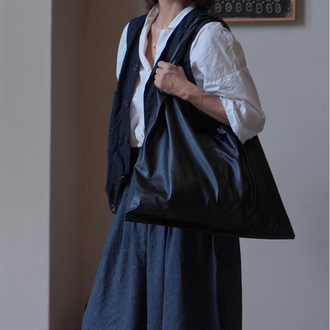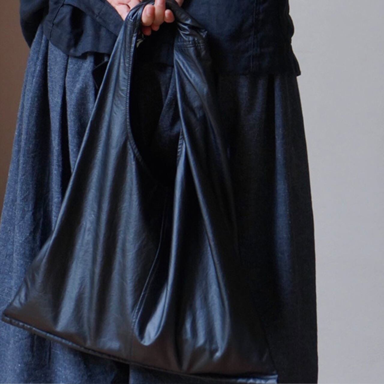 持つだけでこなれ感を演出する、ワンハンドルのフェイクレザートートバッグ。シンプルなデザインながらも、素材感がコーディネートのアクセントになります。