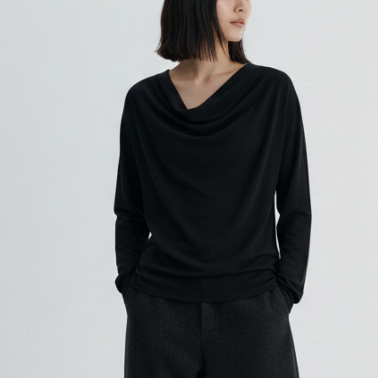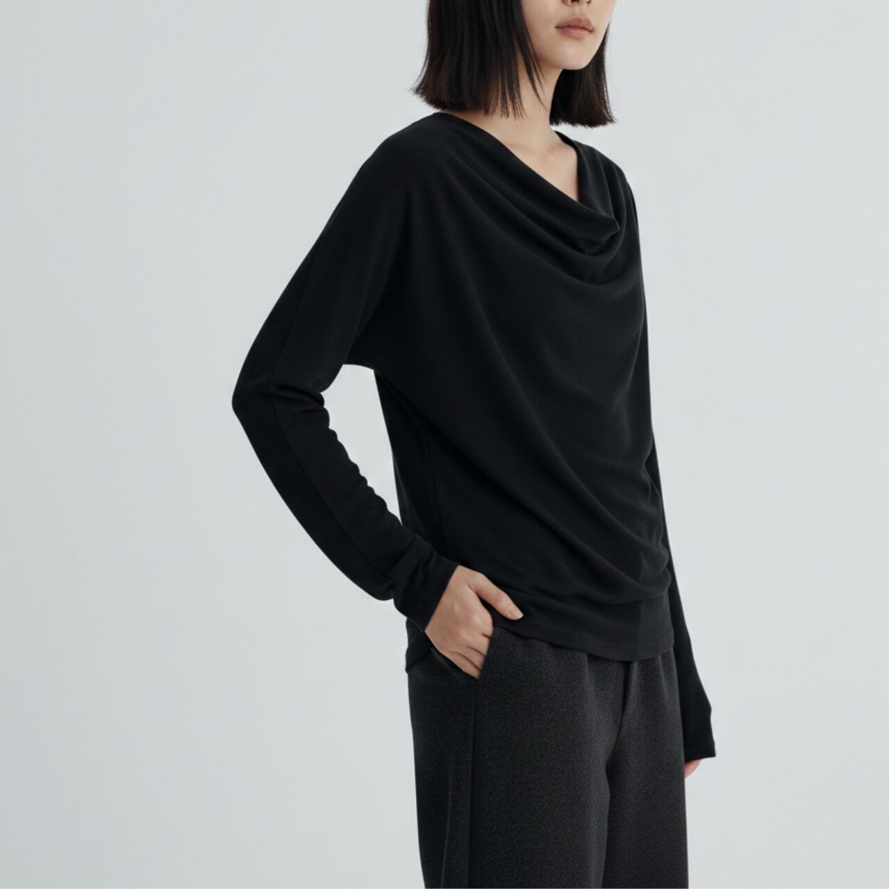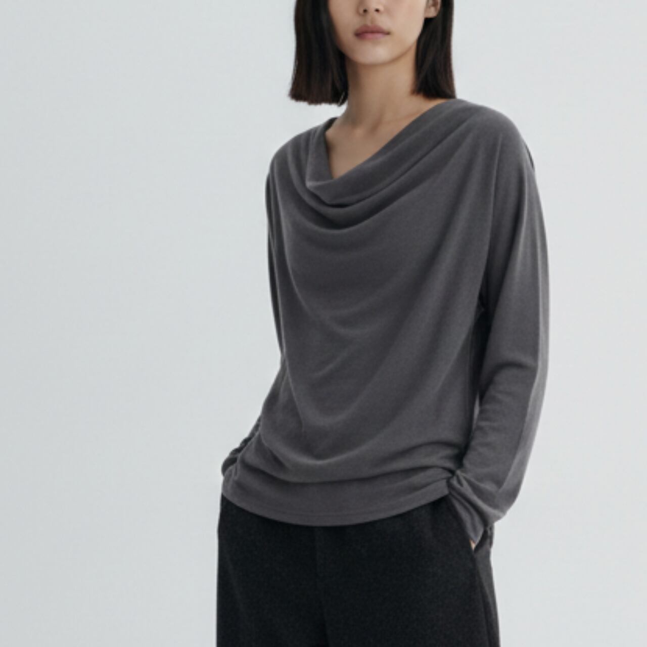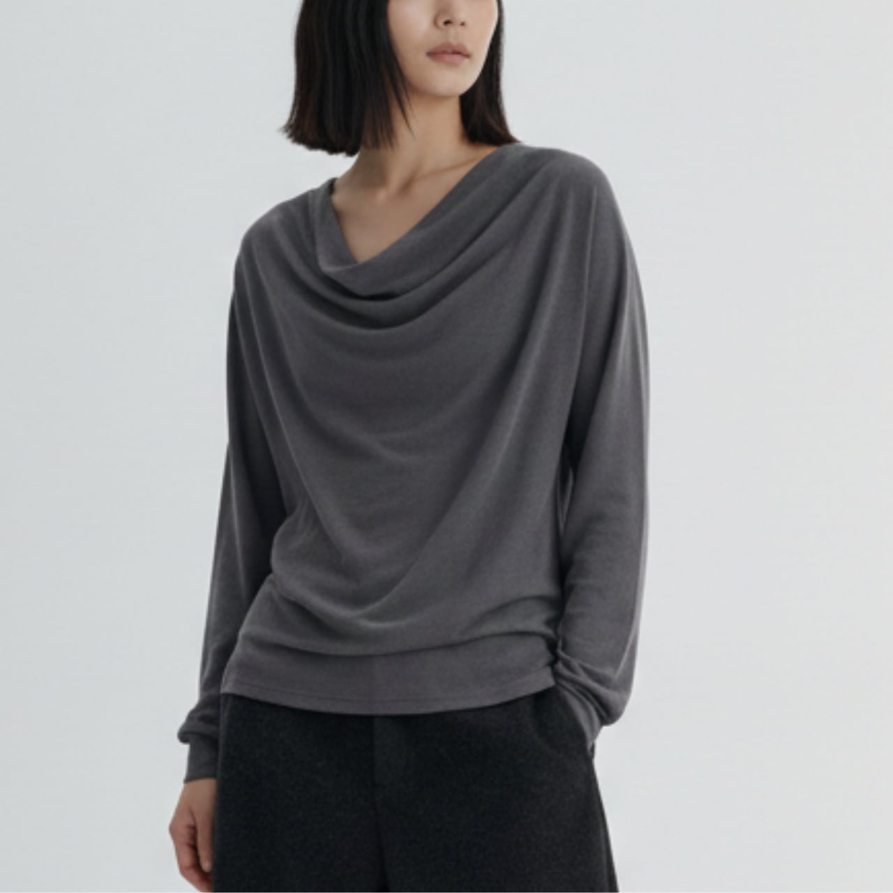 上品なドレープが魅力の長袖カットソー。 オフィスシーンからデイリー使いまで、幅広く活躍します。 ■サイズ(cm) 【S】 着丈:60.5 裄丈:72.5 ウエスト:81 ヒップ:86 袖口幅:8.5 【M】 着丈:62 裄丈:74 ウエスト:85 ヒップ:90 袖口幅:9 【L】 着丈:63.5 裄丈:75.5 ウエスト:89 ヒップ:94 袖口幅:9.5 ・手作業による平置きでの採寸の為、多少の誤差が出る場合がございます。 ■カラー グレー ブラック ■素材 ウール、リヨセル、ポリウレタン ◼️ お届けについて Myuselaでは、ご注文をいただいてから一点ずつ海外より大切にお取り寄せしております。 お届け期間: 通常「10日〜3週間前後」 ※商品状況により、3週間以上お時間をいただく場合もございます。 お手元に届くまで少々お時間をいただきますが、一つひとつ検品・準備をしてお届けいたします。 ◼️ ご購入時の注意事項 海外セレクトアイテムを安心してお楽しみいただくため、以下の点をご了承ください。 在庫について: タイミングにより在庫切れとなった場合は、やむを得ずキャンセル(返金)とさせていただくことがございます。 品質基準: こちらは輸入品のため、日本製とは検品基準が異なります。着用に支障のない範囲での「わずかな汚れやキズ、縫製の甘さ」は、海外製品の特性として販売しております。 色味の差異: 商品のカラーは、お使いのスマートフォンの画面環境により、実物と見え方が異なる場合がございます。 返品・交換: イメージ違いやサイズ間違い等、お客様都合によるキャンセル・返品は承っておりません。サイズ・カラーなどご確認の上、ご注文くださいませ。 ———————————— ご購入前にこちらをお読みください → https://shop.myusela.com/about ————————————