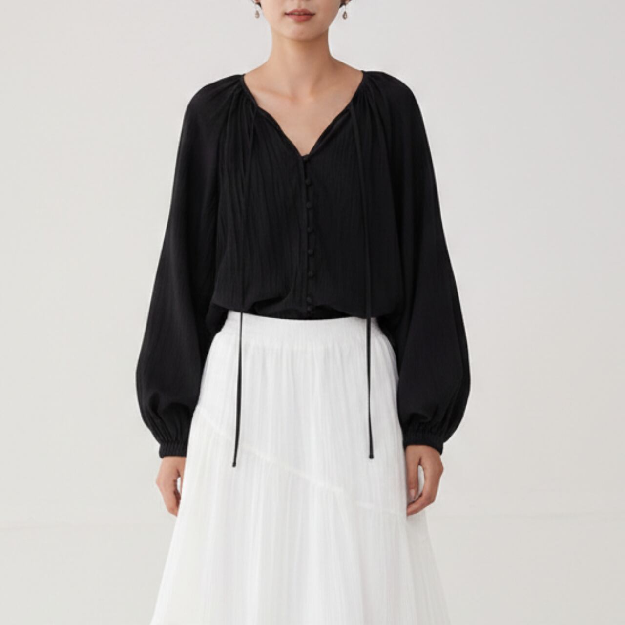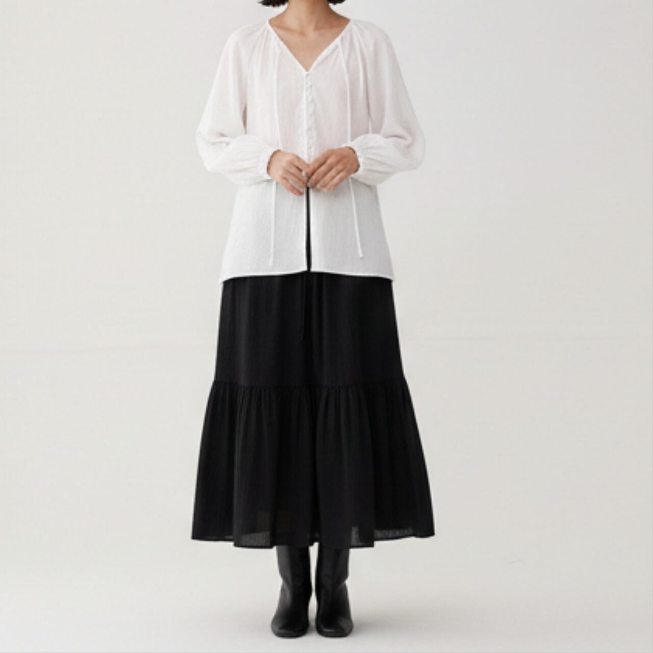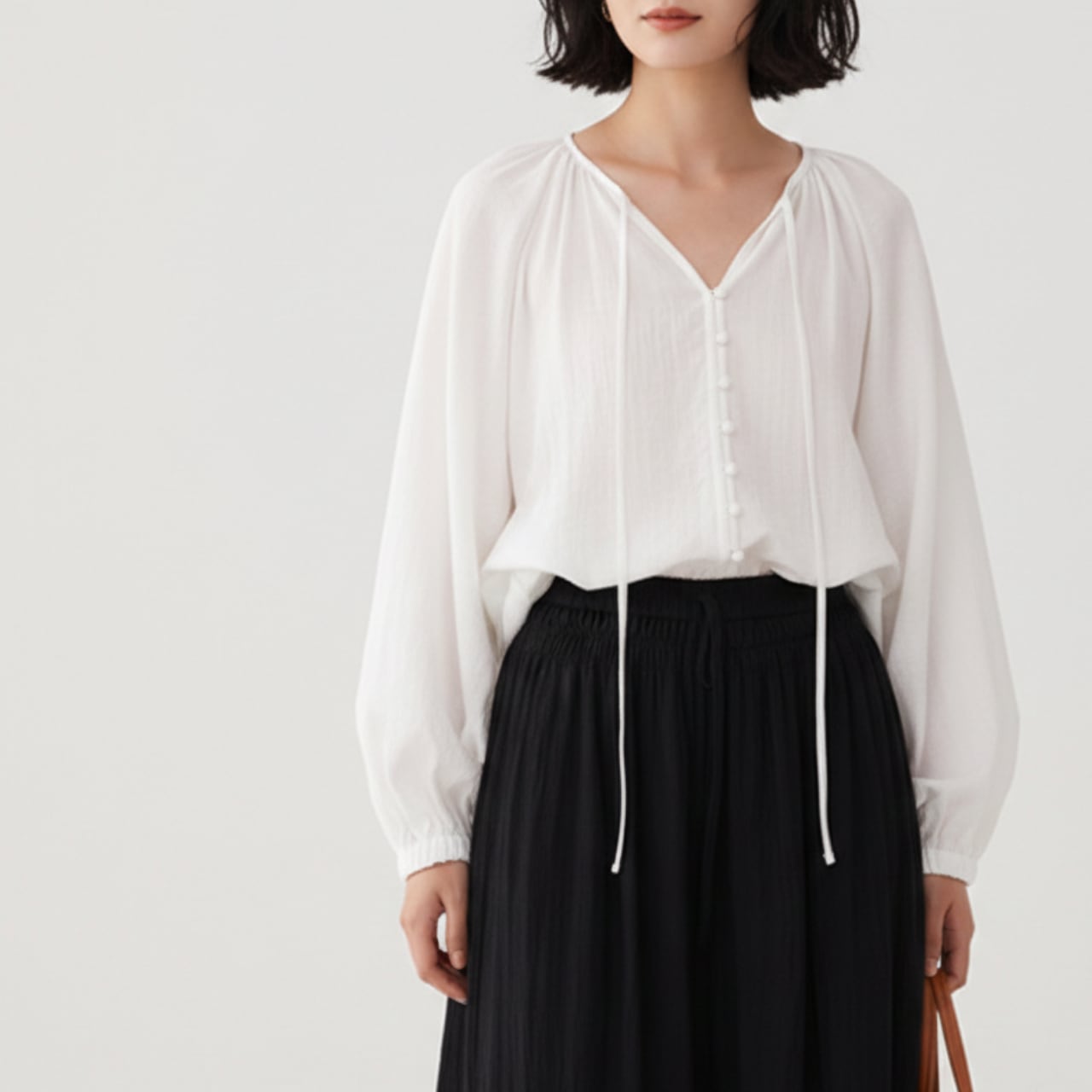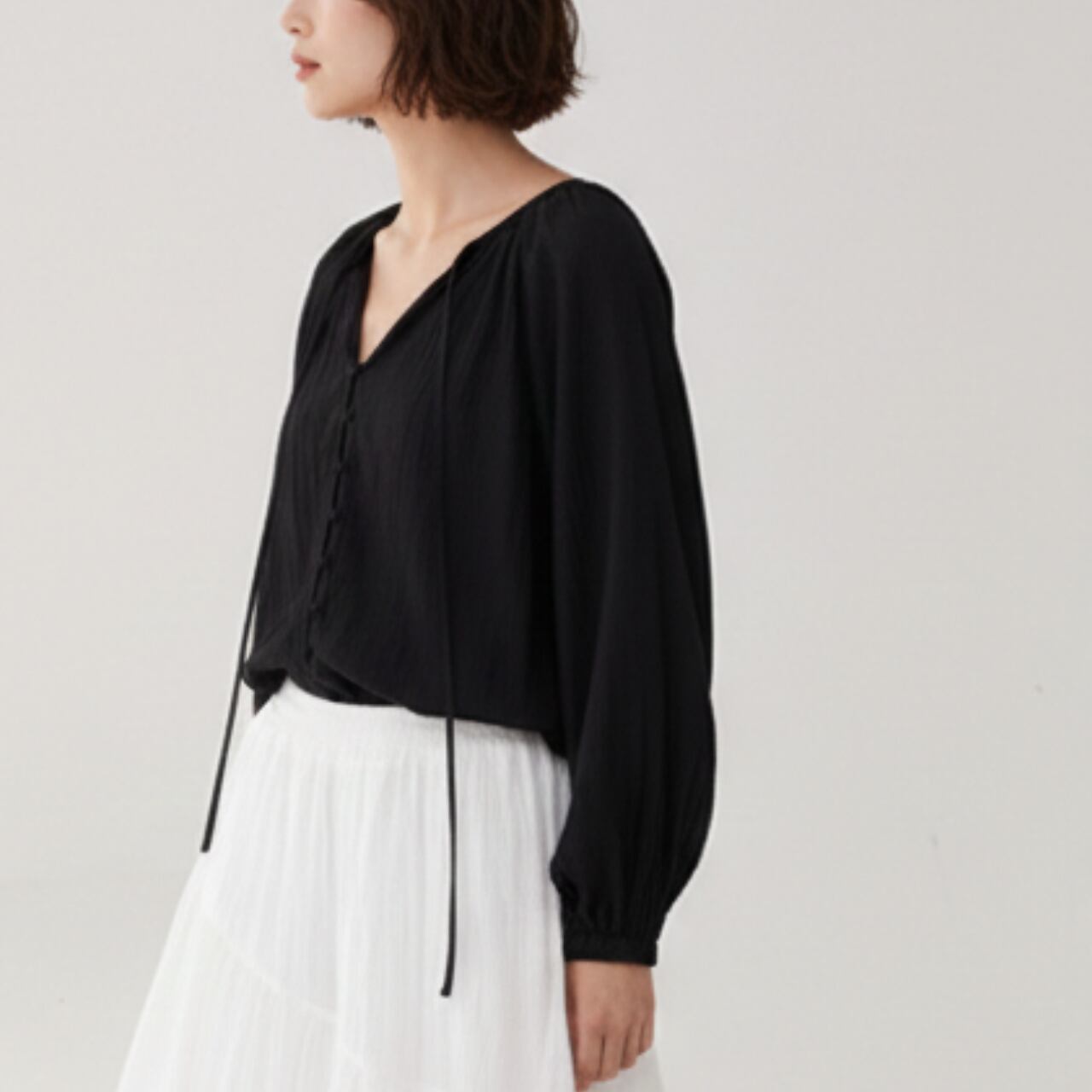 カジュアルリラックスな着心地のブラウス。ゆったりとしたシルエットと長袖デザイン。普段使いはもちろん、オフィススタイルにも合わせやすい汎用性の高さが魅力です。 ■サイズ(cm) 【S】 着丈:68 胸囲:112 袖丈:64.5 【M】 着丈:69 胸囲:116 袖丈:66 【L】 着丈:70 胸囲:120 袖丈:67.5 【XL】 着丈:71 胸囲:124 袖丈:68 ・手作業による平置きでの採寸の為、多少の誤差が出る場合がございます。 ■カラー ホワイト ブラック ■素材 レーヨン、ナイロン、ポリエステル ◼️ お届けについて Myuselaでは、ご注文をいただいてから一点ずつ海外より大切にお取り寄せしております。 お届け期間: 通常「10日〜3週間前後」 ※商品状況により、3週間以上お時間をいただく場合もございます。 お手元に届くまで少々お時間をいただきますが、一つひとつ検品・準備をしてお届けいたします。 ◼️ ご購入時の注意事項 海外セレクトアイテムを安心してお楽しみいただくため、以下の点をご了承ください。 在庫について: タイミングにより在庫切れとなった場合は、やむを得ずキャンセル(返金)とさせていただくことがございます。 品質基準: こちらは輸入品のため、日本製とは検品基準が異なります。着用に支障のない範囲での「わずかな汚れやキズ、縫製の甘さ」は、海外製品の特性として販売しております。 色味の差異: 商品のカラーは、お使いのスマートフォンの画面環境により、実物と見え方が異なる場合がございます。 返品・交換: イメージ違いやサイズ間違い等、お客様都合によるキャンセル・返品は承っておりません。サイズ・カラーなどご確認の上、ご注文くださいませ。 ———————————— ご購入前にこちらをお読みください → https://shop.myusela.com/about ————————————