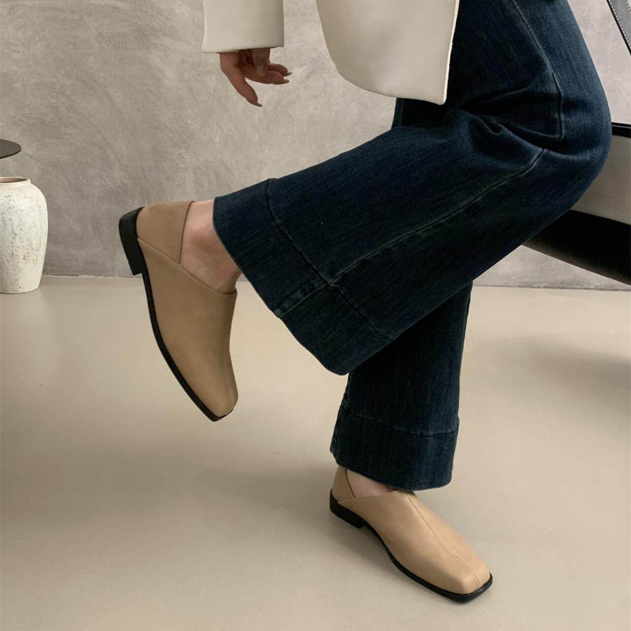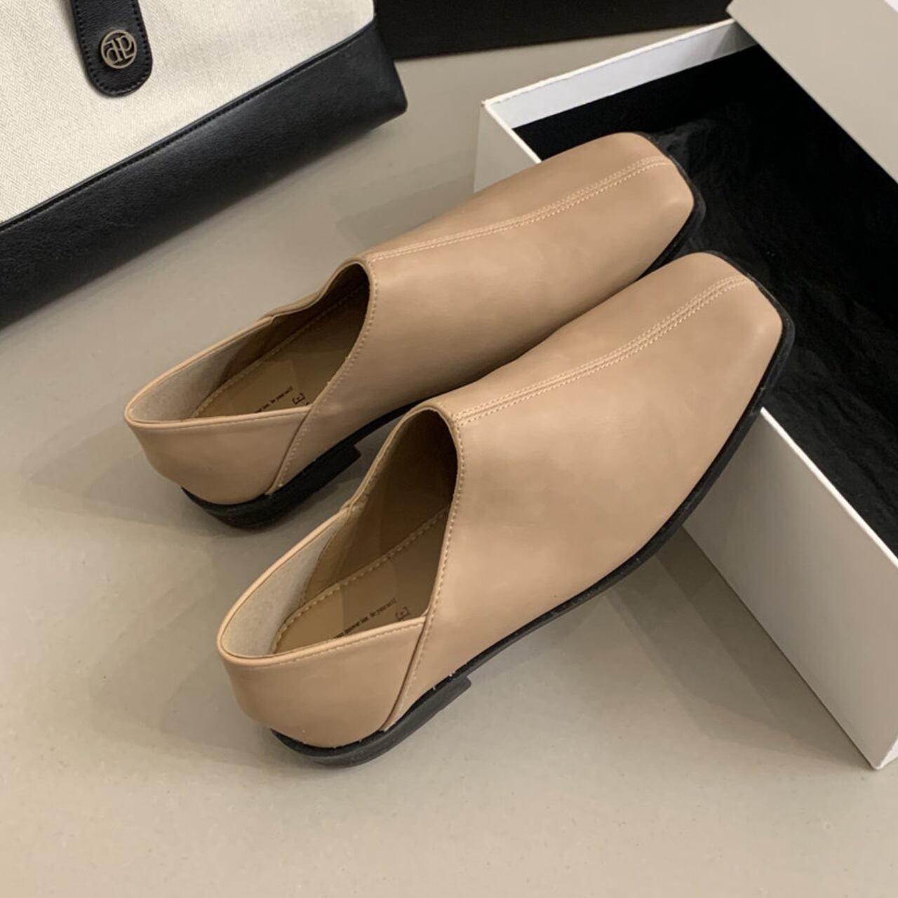 M00036 商品タイトル スクエアトゥ フラット シューズ スクエアトゥのデザインが足元をすっきりと見せてくれるスリッパ。フラットなデザインなので歩きやすく、デイリーユースに最適です。カジュアルなスタイルにはもちろん、きれいめスタイルの外しアイテムとしても活躍します。 ■サイズ 35/22.5cm 36/23cm 37/23.5cm 38/24cm 39/24.5cm ■カラー ブラック ベージュ ■素材 PU ◼️注意事項 ・タイミングによっては 商品在庫切れにより 注文キャンセルとさせていただく恐れもございますので、 予めご理解・ご了承くださいませ。 ・こちらは輸入品となります。 日本製とは検品基準が異なる為、新品未使用品でも ごくわずかな汚れや傷がある場合もございます。 ・商品の色味は、お手持ちのスマートフォンの 画面によって実物と若干異なる場合がございます。 ・イメージ違いやサイズ等、お客様都合による交換、 返品等のキャンセルは対応出来かねますことご理解ください。 ———————————— ご購入前にこちらをお読みください → https://shop.myusela.com/about ————————————