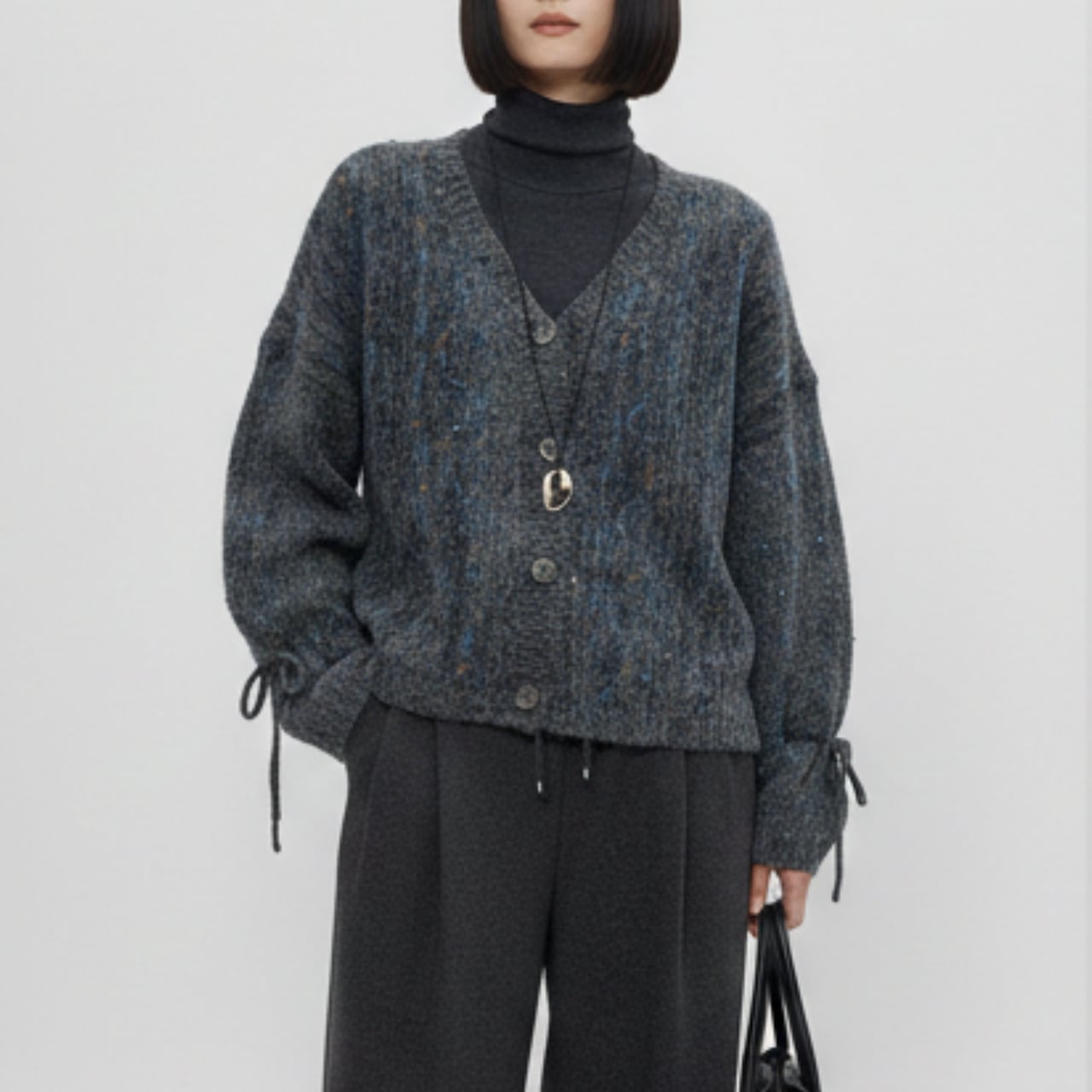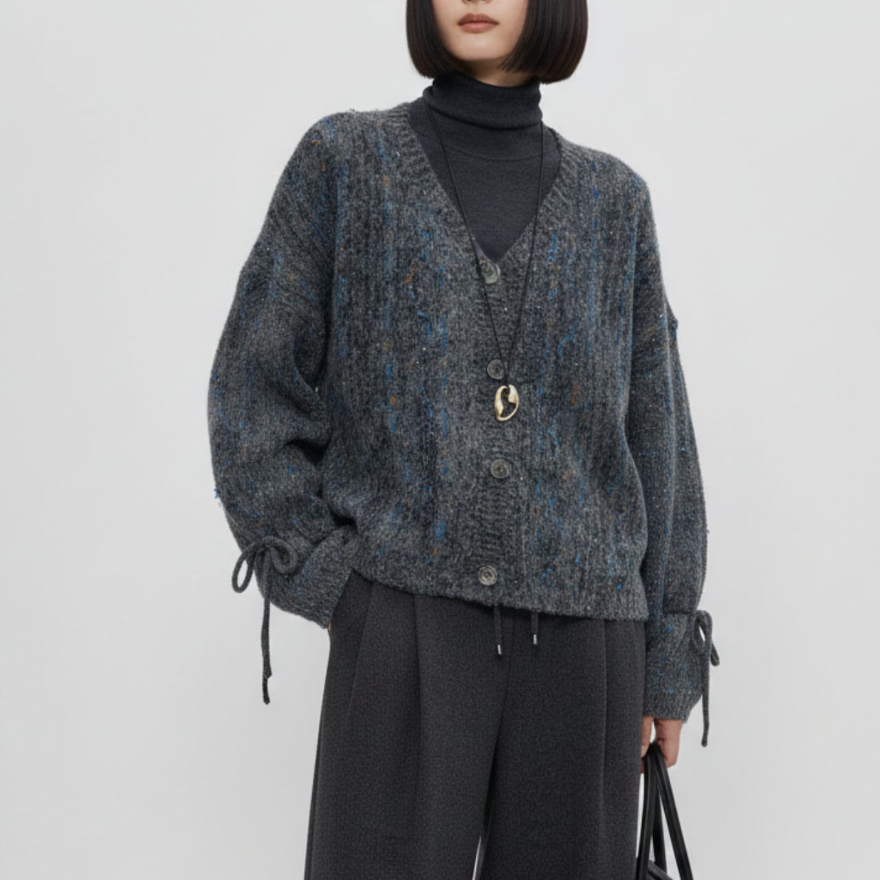 コーディネート自在なニットカーディガン。 ヒップが隠れる丈感で、体型カバーにも役立ちます。 袖口のリボンが、さりげないアクセントをプラス。 ■サイズ 【S】 肩幅:65cm 胸囲:112cm 着丈:55cm 袖丈:45cm 【M】 肩幅:66cm 胸囲:116cm 着丈:56cm 袖丈:46cm 【L】 肩幅:67cm 胸囲:120cm 着丈:57cm 袖丈:47cm ・手作業による平置きでの採寸の為、多少の誤差が出る場合がございます。 ■カラー ダークグレー ■素材 ポリエステル、ポリエステル、ウール、ポリウレタン ◼️注意事項 ・タイミングによっては 商品在庫切れにより 注文キャンセルとさせていただく恐れもございますので、 予めご理解・ご了承くださいませ。 ・こちらは輸入品となります。 日本製とは検品基準が異なる為、新品未使用品でも ごくわずかな汚れや傷がある場合もございます。 ・商品の色味は、お手持ちのスマートフォンの 画面によって実物と若干異なる場合がございます。 ・イメージ違いやサイズ等、お客様都合による交換、 返品等のキャンセルは対応出来かねますことご理解ください。 ———————————— ご購入前にこちらをお読みください → https://shop.myusela.com/about ————————————