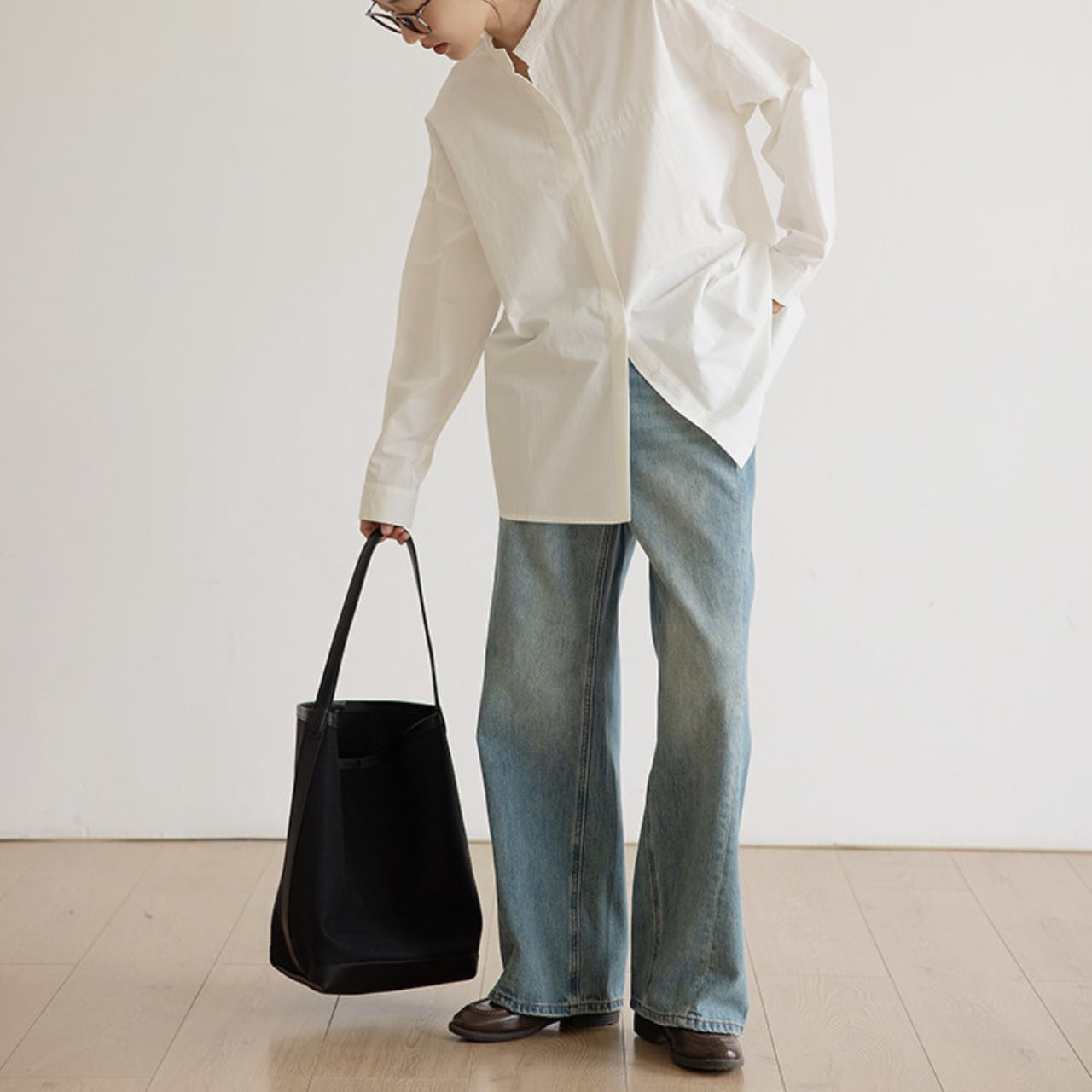 シンプルなデザインに個性を加えたバンドカラーシャツ。 ゆったりとしたシルエットでリラックス感があり、普段使いに最適です。 長袖なので、一枚で着たり、重ね着したり、様々なスタイリングが可能です。 ■サイズ 【S】 肩幅:48cm 胸囲:115cm 着丈:67cm 袖丈:55cm 【M】 肩幅:49cm 胸囲:119cm 着丈:68cm 袖丈:56cm 【L】 肩幅:50cm 胸囲:125cm 着丈:69cm 袖丈:57cm ・手作業による平置きでの採寸の為、多少の誤差が出る場合がございます。 ■カラー ホワイト ■素材 コットン ◼️注意事項 ・タイミングによっては 商品在庫切れにより 注文キャンセルとさせていただく恐れもございますので、 予めご理解・ご了承くださいませ。 ・こちらは輸入品となります。 日本製とは検品基準が異なる為、新品未使用品でも ごくわずかな汚れや傷がある場合もございます。 ・商品の色味は、お手持ちのスマートフォンの 画面によって実物と若干異なる場合がございます。 ・イメージ違いやサイズ等、お客様都合による交換、 返品等のキャンセルは対応出来かねますことご理解ください。 ———————————— ご購入前にこちらをお読みください → https://shop.myusela.com/about ————————————