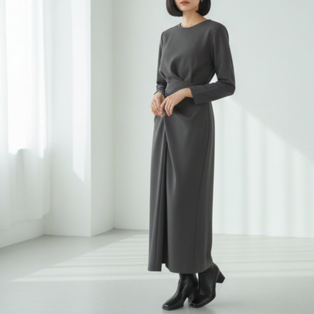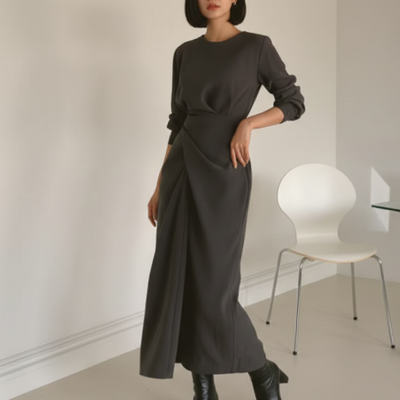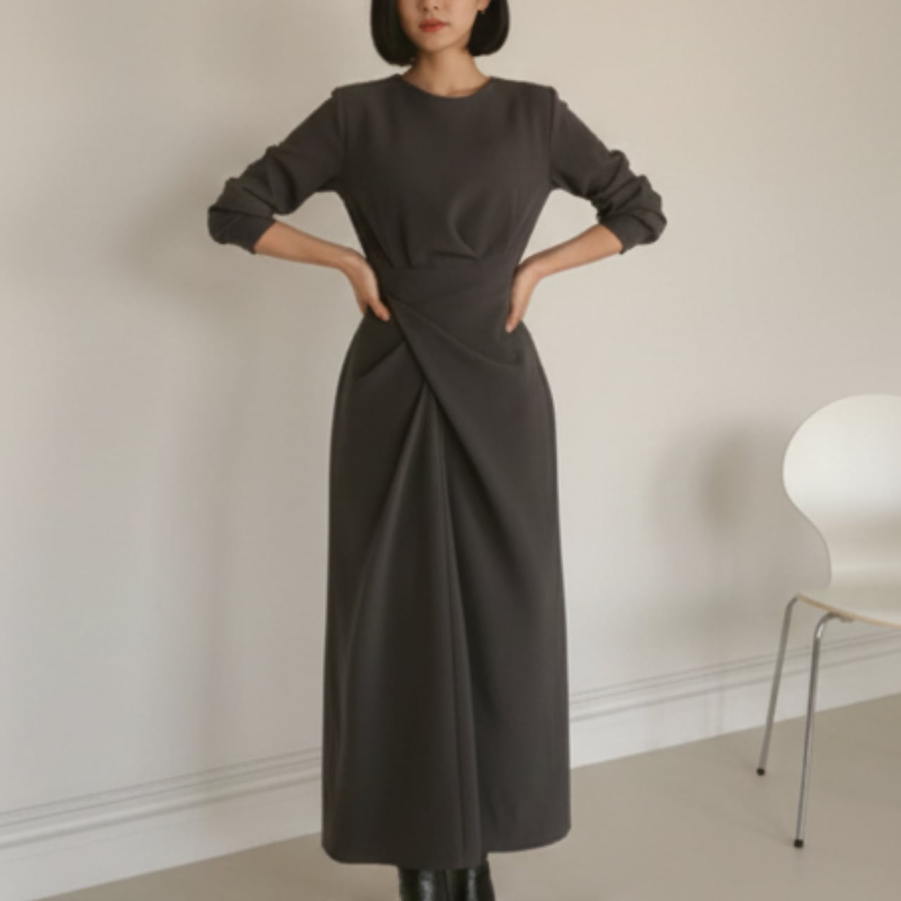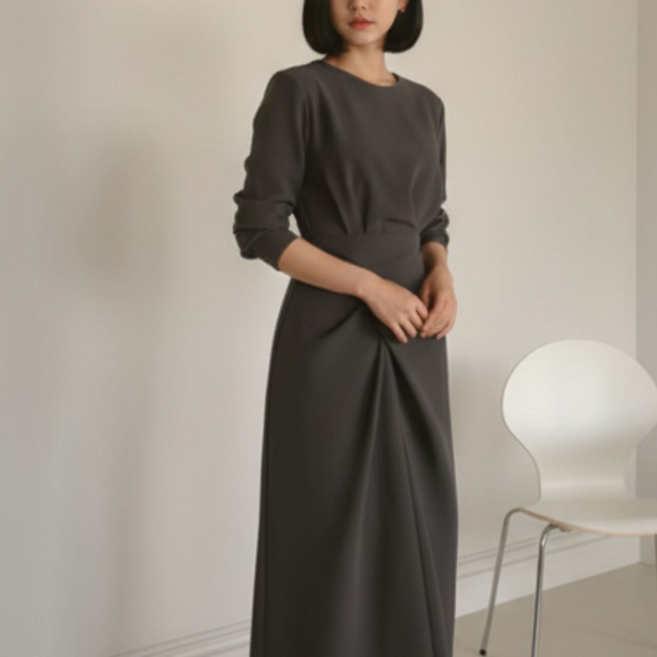 フロントがラップ風のデザインが目を引くワンピース。一枚でコーディネートが決まるので、忙しい朝にも重宝します。長袖なので、一枚で着るのはもちろん、アウターを羽織っても素敵です。 ■サイズ(cm) 【S】 肩幅:40 胸囲:98 着丈:120 袖丈:59 【M】 肩幅:41 胸囲:102 着丈:121 袖丈:60 【L】 肩幅:42 胸囲:106 着丈:122 袖丈:61 【XL】 肩幅:43 胸囲:110 着丈:123 袖丈:62 ・手作業による平置きでの採寸の為、多少の誤差が出る場合がございます。 ■カラー グレー ■素材 ポリエステル ◼️ お届けについて Myuselaでは、ご注文をいただいてから一点ずつ海外より大切にお取り寄せしております。 お届け期間: 通常「10日〜3週間前後」 ※商品状況により、3週間以上お時間をいただく場合もございます。 お手元に届くまで少々お時間をいただきますが、一つひとつ検品・準備をしてお届けいたします。 ◼️ ご購入時の注意事項 海外セレクトアイテムを安心してお楽しみいただくため、以下の点をご了承ください。 在庫について: タイミングにより在庫切れとなった場合は、やむを得ずキャンセル(返金)とさせていただくことがございます。 品質基準: こちらは輸入品のため、日本製とは検品基準が異なります。着用に支障のない範囲での「わずかな汚れやキズ、縫製の甘さ」は、海外製品の特性として販売しております。 色味の差異: 商品のカラーは、お使いのスマートフォンの画面環境により、実物と見え方が異なる場合がございます。 返品・交換: イメージ違いやサイズ間違い等、お客様都合によるキャンセル・返品は承っておりません。サイズ・カラーなどご確認の上、ご注文くださいませ。 ———————————— ご購入前にこちらをお読みください → https://shop.myusela.com/about ————————————