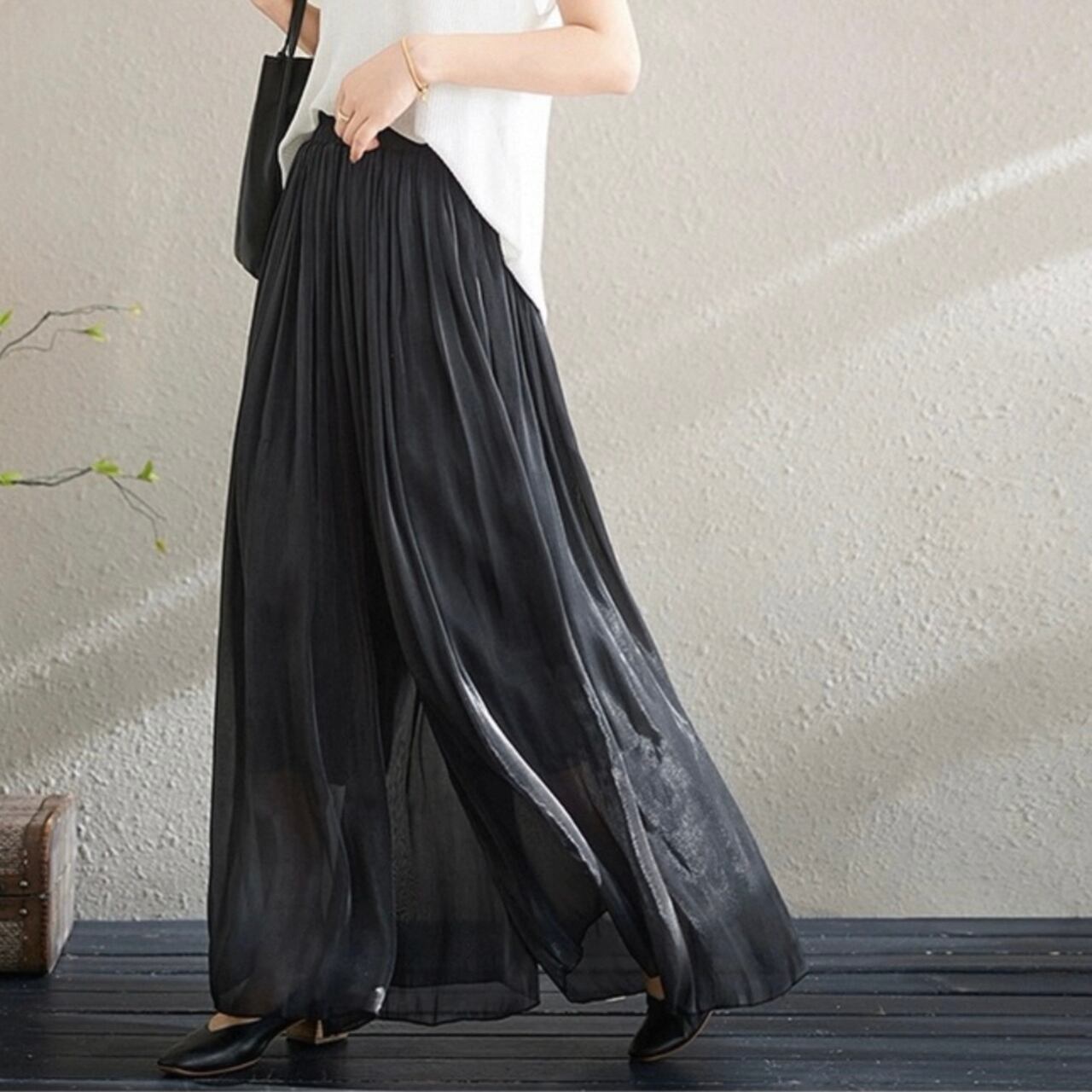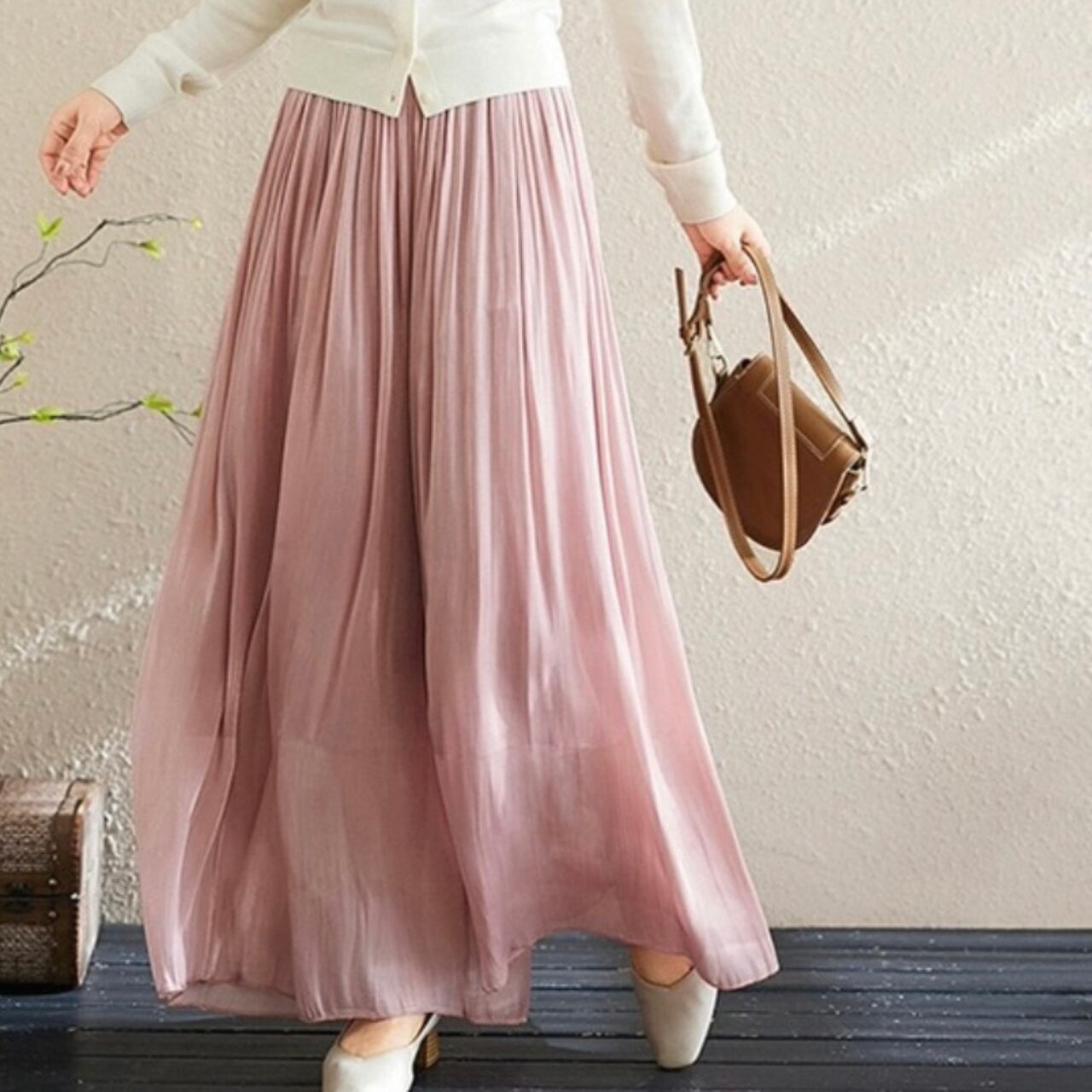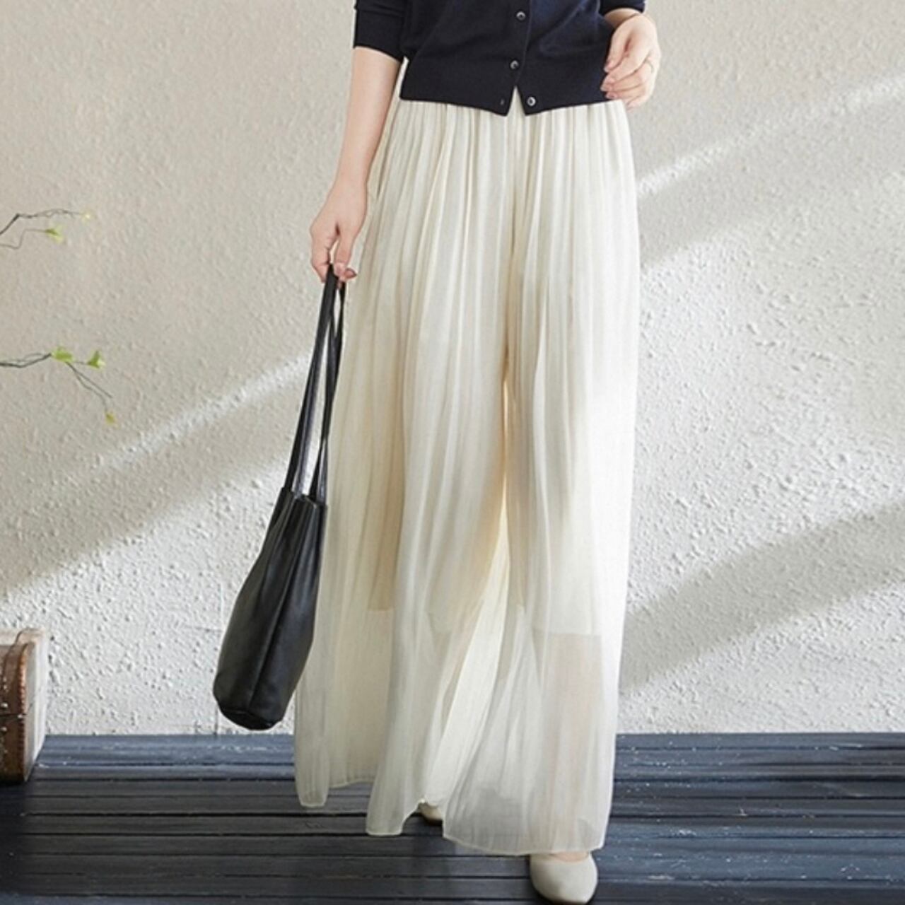 ウエストギャザーを施した、リラックス感漂うワイドパンツ。フルレングスなので、気になる脚のラインをカバーしつつ、こなれた雰囲気を演出します。 ■サイズ(cm) 【L】 総丈:100 ウエスト:63 ヒップ:118 【XL】 総丈:101 ウエスト:66 ヒップ:122 ※手作業による平置きでの採寸の為、多少の誤差が出る場合がございます。 ■カラー キャメル ライトカーキ ライトベージュ ブラック オフホワイト ライトピンク ■素材 綿、ポリエステル ※お洗濯は基本手洗いかドライクリーニングをお勧めします。 ※濃色のものに関しては、色移りの可能性もございます。なるべく単品でのお洗濯をお願いします。 ◼️ お届けについて Myuselaでは、ご注文をいただいてから一点ずつ海外より大切にお取り寄せしております。 お届け期間: 通常「10日〜3週間前後」 ※商品状況により、3週間以上お時間をいただく場合もございます。 お手元に届くまで少々お時間をいただきますが、一つひとつ検品・準備をしてお届けいたします。 ◼️ ご購入時の注意事項 海外セレクトアイテムを安心してお楽しみいただくため、以下の点をご了承ください。 在庫について: タイミングにより在庫切れとなった場合は、やむを得ずキャンセル(返金)とさせていただくことがございます。 品質基準: こちらは輸入品のため、日本製とは検品基準が異なります。着用に支障のない範囲での「わずかな汚れやキズ、縫製の甘さ」は、海外製品の特性として販売しております。 色味の差異: 商品のカラーは、お使いのスマートフォンの画面環境により、実物と見え方が異なる場合がございます。 返品・交換: イメージ違いやサイズ間違い等、お客様都合によるキャンセル・返品は承っておりません。サイズ・カラーなどご確認の上、ご注文くださいませ。 ———————————— ご購入前にこちらをお読みください → https://shop.myusela.com/about ————————————