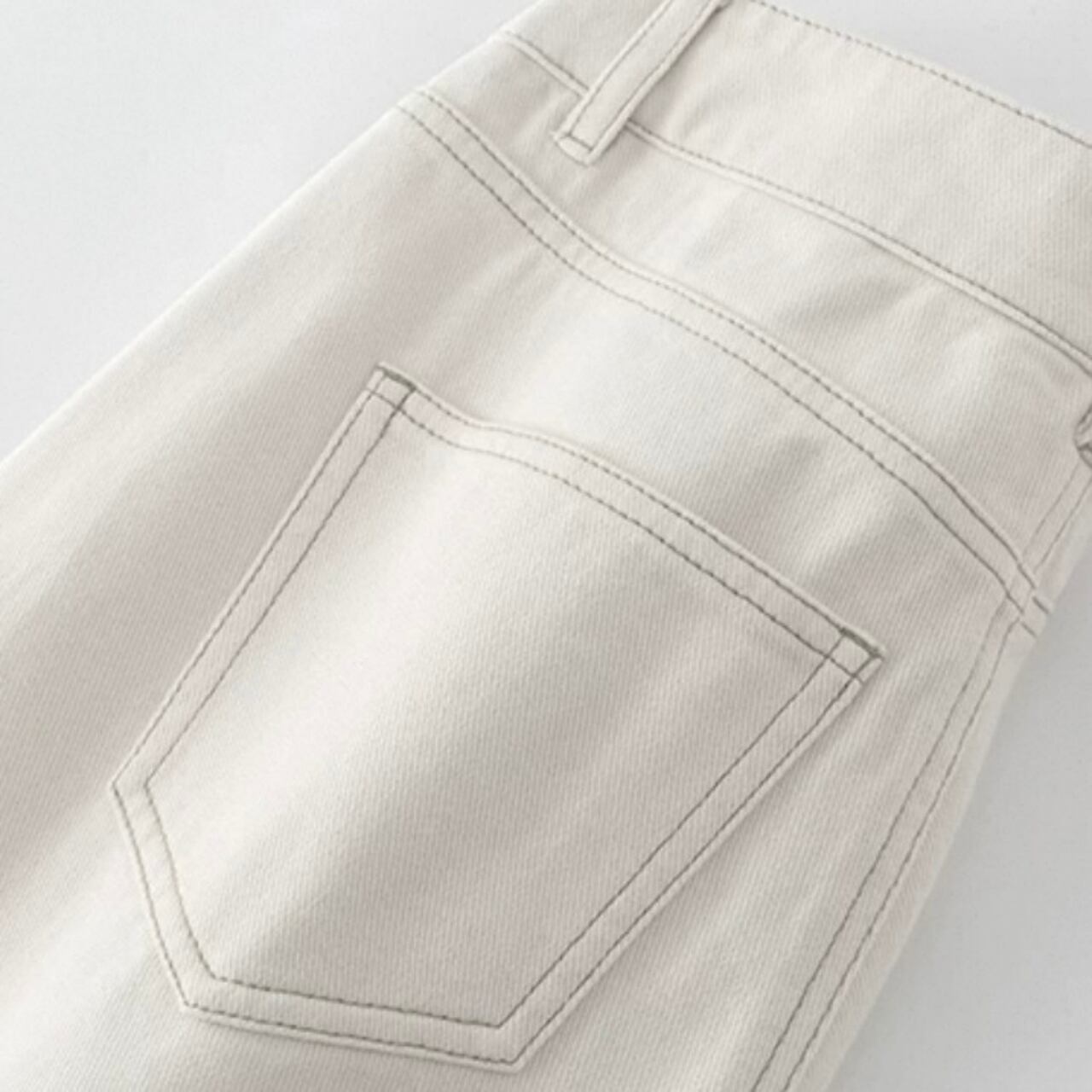 ハイウエストデザインで脚長効果が期待できる少しワイドなデニム。シンプルなデザインなので、様々なトップスとの相性も抜群です。 ■サイズ(cm) 【26】 ウエスト:65.7 ヒップ:91.7 わたり幅:48.5 裾幅:43 総丈:100 【27】 ウエスト:69 ヒップ:95 わたり幅:49.5 裾幅:43.8 総丈:100 【28】 ウエスト:72.3 ヒップ:98.3 わたり幅:50.5 裾幅:44.6 総丈:100.5 【29】 ウエスト:75.6 ヒップ:101.6 わたり幅:51.5 裾幅:45.4 総丈:100.5 【30】 ウエスト:78.9 ヒップ:104.9 わたり幅:52.5 裾幅:46.2 総丈:101 【31】 ウエスト:82.2 ヒップ:108.2 わたり幅:53.5 裾幅:47 総丈:101 【32】 ウエスト:85.5 ヒップ:111.5 わたり幅:54.5 裾幅:47.8 総丈:101.5 【33】 ウエスト:88.8 ヒップ:114.8 わたり幅:55.5 裾幅:48.6 総丈:101.5 ※手作業による平置きでの採寸の為、多少の誤差が出る場合がございます。 ■カラー ホワイト ヴィンテージブルー インディゴブルー ブラック ■素材 コットン ※お洗濯は基本手洗いかドライクリーニングをお勧めします。 ◼️ お届けについて Myuselaでは、ご注文をいただいてから一点ずつ海外より大切にお取り寄せしております。 お届け期間: 通常「10日〜3週間前後」 ※商品状況により、3週間以上お時間をいただく場合もございます。 お手元に届くまで少々お時間をいただきますが、一つひとつ検品・準備をしてお届けいたします。 ◼️ ご購入時の注意事項 海外セレクトアイテムを安心してお楽しみいただくため、以下の点をご了承ください。 在庫について: タイミングにより在庫切れとなった場合は、やむを得ずキャンセル(返金)とさせていただくことがございます。 品質基準: こちらは輸入品のため、日本製とは検品基準が異なります。着用に支障のない範囲での「わずかな汚れやキズ、縫製の甘さ」は、海外製品の特性として販売しております。 色味の差異: 商品のカラーは、お使いのスマートフォンの画面環境により、実物と見え方が異なる場合がございます。 返品・交換: イメージ違いやサイズ間違い等、お客様都合によるキャンセル・返品は承っておりません。サイズ・カラーなどご確認の上、ご注文くださいませ。 ———————————— ご購入前にこちらをお読みください → https://shop.myusela.com/about ————————————