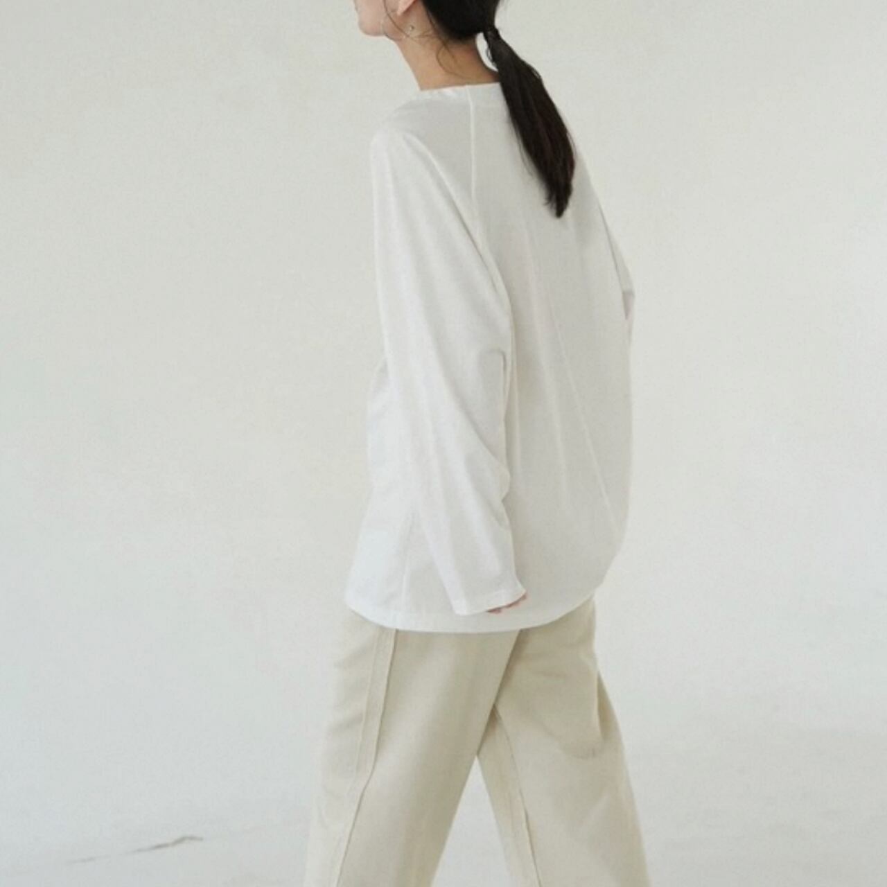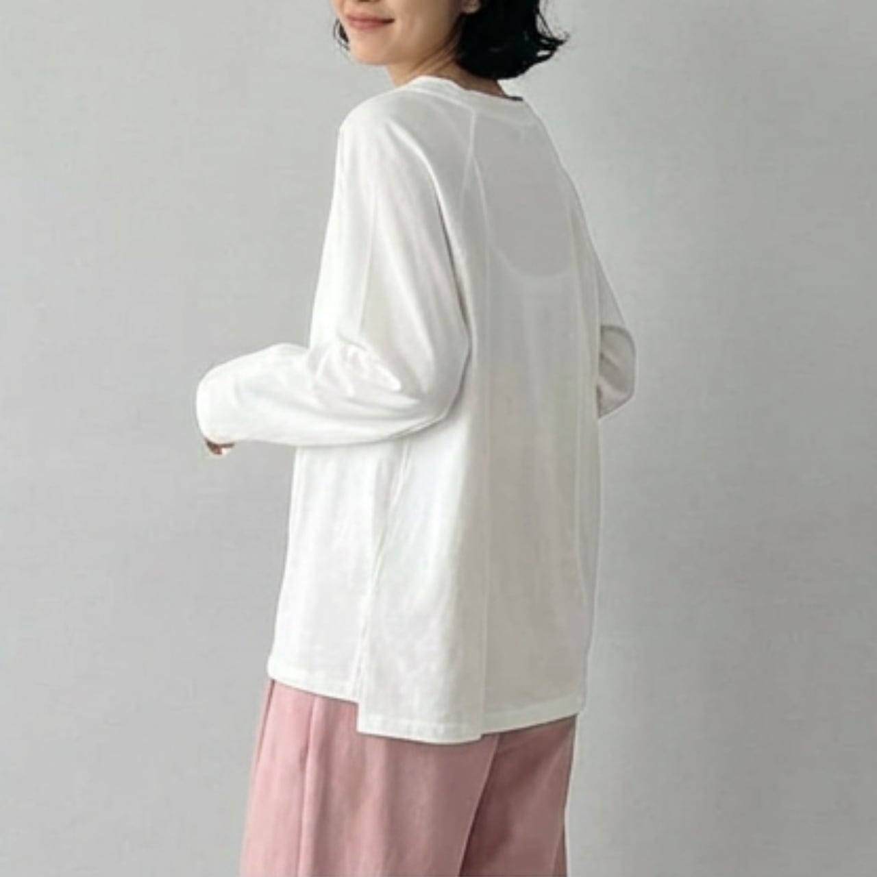 こだわりのスクエアネックがポイントのミディ丈ブラウス。デコルテを綺麗に見せてくれる襟元がカジュアルな中に女性らしさをプラスしてくれます。